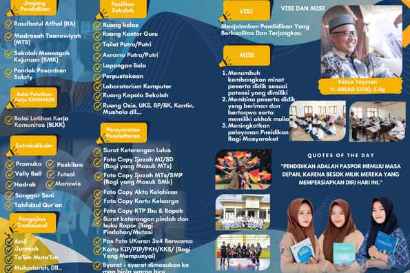 Mari persiapkan anak-anak kita untuk masa depan yang gemilang dengan pendidikan yang berkualitas, penuh nilai agama dan keterampilan yang bermanfaat. Jangan lewatkan kesempatan ini untuk memberikan yang terbaik bagi generasi masa depan.
